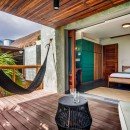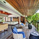 This villa was created to build a connection between its guests and the environment around them. It has tropical architecture that mixes with vibrant outdoor spaces and a tastefully decorated interior space. All of the areas comingle together to create something special. The exterior of the villa has a climatized pool along one side and offers a jungle deck on the other for plenty of opportunities to enjoy the wildlife and plants of the location.