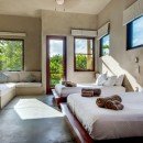Bedroom 3: Bedroom with two queen-size bed, 2 built-in sofa beds, A/C, terrace, jungle view, en-suite bathroom with shower and shared half-bathroom with vanity and WC. 2 guests maximum