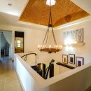 The two-story villa also features inspired interior spaces including a two-story family room with balcony, a formal dining room, and a gourmet kitchen.