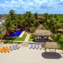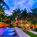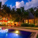Across the waters from Cozumel in the Soliman Bay area of the Mayan Riviera is the charming Villa Casa Buena Suerte. A six-bedroom luxury property, it is steps from the sands and offers a resort-like array of amenities and activities in a private estate-like setting.