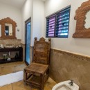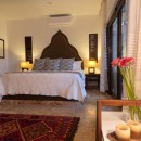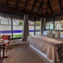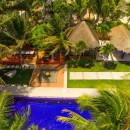 The bedrooms have all been designed as little retreats of their own and are spread out between the floors to make the most of the view and ensure privacy. The main area of the villa features a king suite with terrace access and a patio of its own along with an open air shower. Another king suite features a beach terrace, a third features a private terrace on an upper floor. The fourth suite also has a terrace and the fifth opens to the beach. All of them have large, private baths. The garden palapa features a king suite, but also has a kitchenette and a terrace to the pool.