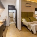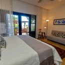 Bedroom 6: Ground floor bedroom with a king-size bed, kitchenette, A/C, ceiling fan, safe, access to pool and beach, ocean view and en-suite bathroom with shower, vanity and WC. 2 guests maximum.