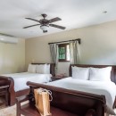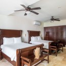 Bedroom 11: Ground floor bedroom with two queen-size beds, A/C, ceiling fan, safe, hairdryer, and en-suite bathroom with shower, vanity, and WC. 2 guests maximum.