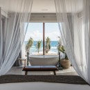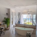 Bedroom 5: First floor bedroom with a king-size bed (can be converted to two single beds), A/C, ceiling fan, safe, private terrace with ocean views and en-suite bathroom with bathtub, shower, vanity and WC. 2 guests maximum.