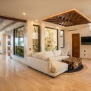 The lower level invites you to indulge in culinary delights created by our incredible chef. Dine at our exquisite marble island, which seats eight, or our uniquely extravagant custom wood dining table, accommodating up to sixteen guests. There are also two sofa lounging areas for relaxation, one of which overlooks the infinity pool and the Caribbean beyond. Step onto the expansive terrace, where the ocean breeze and luxurious outdoor living spaces await. Take a dip in the sparkling infinity pool, lounge on spa-style chaise loungers, and savor the stunning panoramic views. For alfresco dining, we offer a beautiful Mexican palapa dining area by the ocean. The villa ensures seamless connectivity with sophisticated high-speed internet, a mesh system, and eleven strategically placed routers. Enjoy your favorite tunes on our state-of-the-art SONOS WIFI-based speaker system, available throughout the entire villa, including the first-floor living room, second-floor TV lounge, pool deck, and rooftop.