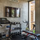 The second level houses a private gym, complete with top-of-the-line equipment, a TV for entertainment, and air conditioning for comfort during your workout. Our gym includes a variety of weights, a workout bench, a chin-up bar, a treadmill, a rowing machine, and an exercise bike. Adjacent to the gym, you'll find a fun game room with foosball, ping pong, cards, and board games. If you prefer to relax and stay close to the action, there are comfortable sofas in both the game room and adjacent TV room.