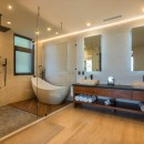 Inside, you'll find six spacious bedrooms, meticulously designed and furnished with the finest materials to guarantee absolute comfort and relaxation. The villa seamlessly blends contemporary and traditional elements, harmonizing sleek modern amenities with classic architectural features. Each bedroom includes an en-suite bathroom, a Bluetooth speaker, plush bathrobes, hairdryers, and shower amenities. Additionally, all king bedrooms feature a dedicated workspace with a floating desk and chair.