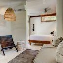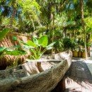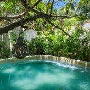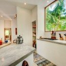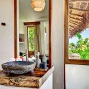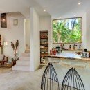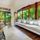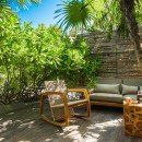 Designed to incorporate a lot of native materials and iconic regional design elements, it features amazing décor and offers a truly remarkable setting for a holiday with family or friends. If we start from the top of the villa and work down, we’d have to begin with the stunning rooftop terrace. Unlike so many villas, this one ensures you get the most from the setting and savor the sea views and breezes at any time of the day or night. Wake with the sun or toast a sunrise from this fully furnished area, and of course enjoy amazing stargazing and sunbathing. If you are a fan of shaded nooks, you’ll also love the garden terrace surrounded by a charming grove of palms. With a hammock and oversized furniture, it may become your favorite tropical retreat.