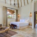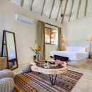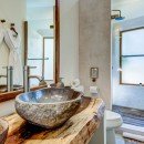 Inside, the beautiful design shows its stuff and you’ll love the use of richly stained native woods against the pale stone and stucco walls and floors. There is a large lounge, a laid-back dining area, and a truly stunning modern kitchen. You’ll be amazed at the excellent use of native and local art and unique elements to create an eclectic look throughout.
