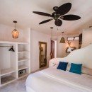 Bedroom 2: Bedroom with a queen-size bed, ceiling fan, A/C, WiFi, balcony, pool view and en-suite bathroom with shower, vanity and WC. 2 guests maximum.