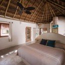 Villa Zorba Cuatro is a beautiful place for a group of up to eight friends or family members to enjoy the sights of Tulum in the Mayan Riviera. This Mexican villa has three bedroom suites and is nestled into many types of natural plants on the Zorba community property. It is found under several tree canopies and offers a secluded rooftop terrace for socializing and enjoying the company of others in the group. The villa is steps away from the community shared pool and a quick distance from Tulum Beach and its gorgeous white sand.