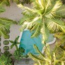 The villa has been designed to take the beauty that Tulum is known for and infuse it into every room. Whether you’re in one of the bedrooms, a dining area, or a bathroom, you can expect to experience artistic décor and natural elements that create a relaxing atmosphere. The way the villa is set up makes it ideal for a small family or two couples who want to explore Tulum and spend time at the beach together. It has a private entrance that guests can access through an exterior staircase.