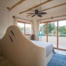 The colors used in the villa all feel very natural and create a laid-back vibe. It has an open floor plan with an engaging sitting area next to a dining table with seating for six. The kitchen has all the needed appliances to make delectable snacks, meals, and beverages during your stay. As one of the Zorba villas, this dwelling is perfect for a luxurious experience in Mexico.