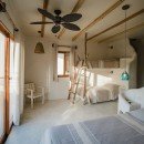 Bedroom 2: Bedroom with a queen-size bed, bunk bed, ceiling fan, A/C, WiFi, pool view and en-suite bathroom with shower, vanity and WC. 2 adults and 2 kids maximum.