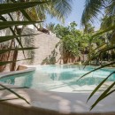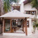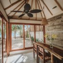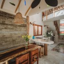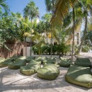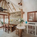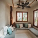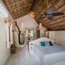 At the front of the villa, guests will find copious types of greenery mixed in with unique tropical plants that lead out to the sea. The combination of beach décor and the tropical location makes this villa stand out from other accommodations in the area. As part of the Zorba community, the villa guests can make use of all sorts of amenities. There are a yoga studio and fitness center for working out, a rooftop patio with sensational views, and a selection of loungers and daybeds down on the beach.