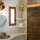 The main floor of Zorba Uno is spacious and bright with an open floor plan that encompasses the fully equipped kitchen, a lounge area with comfortable furnishings, and glass doors that open right up to offer spectacular views of the sea. The doors can be opened up wide to let in sea breezes. Right outside of them, guests will find an alfresco dining area perfect for having a meal together and enjoying the natural wonders all around the villa’s grounds.