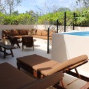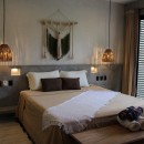 Upstairs, there are two identical bedrooms, each with a comfortable king-size bed, a private ensuite bathroom, and a terrace complete with hammocks and cozy chairs. These peaceful outdoor areas are perfect for morning coffee, reading, or simply unwinding.