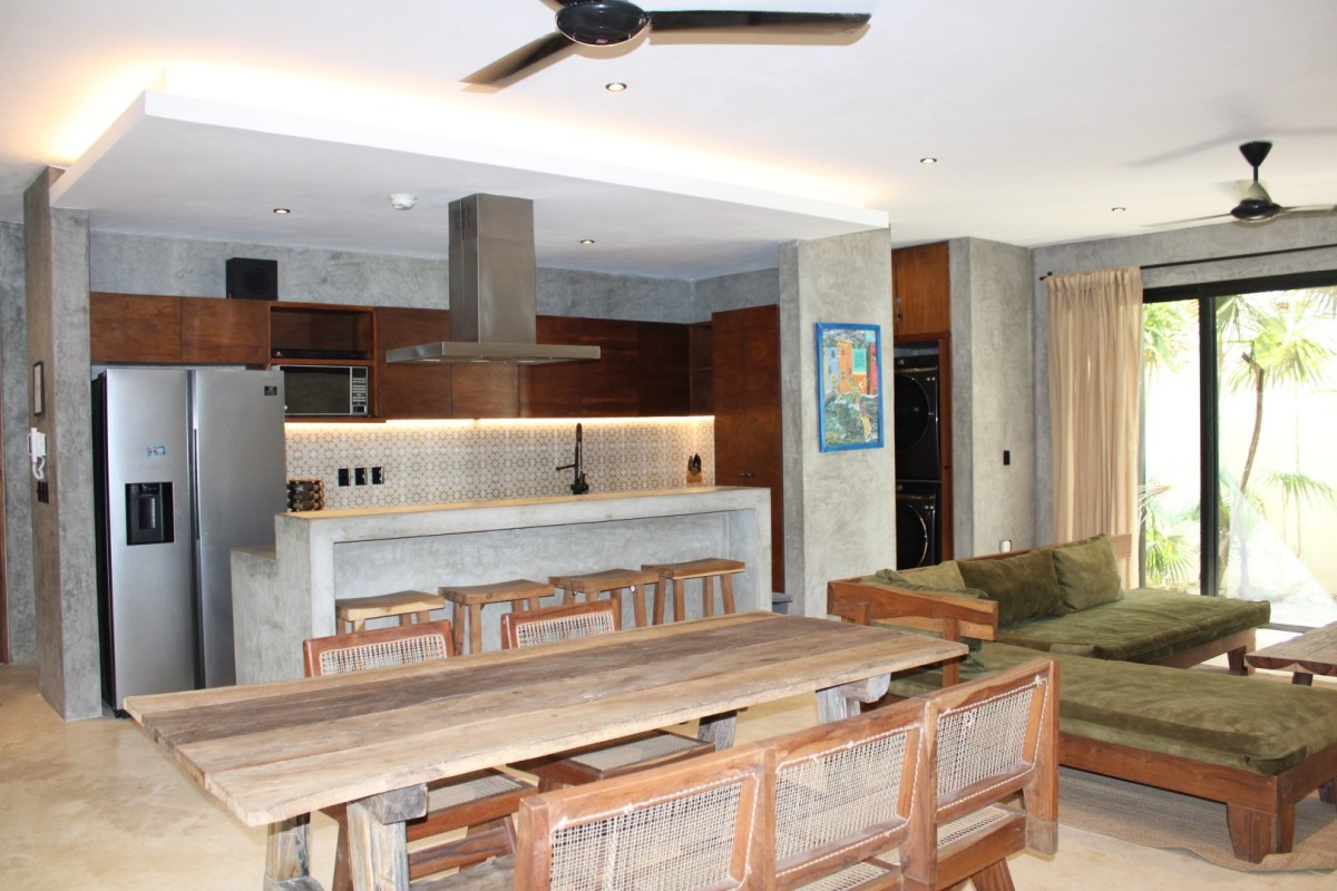 Welcome to Villa Kokoon, a spacious and comfortable three-story villa located in the peaceful La Veleta neighborhood of Tulum. This beautiful home offers plenty of room to relax, with four terraces, a private rooftop, and a thoughtfully designed layout perfect for couples, families, or friends.