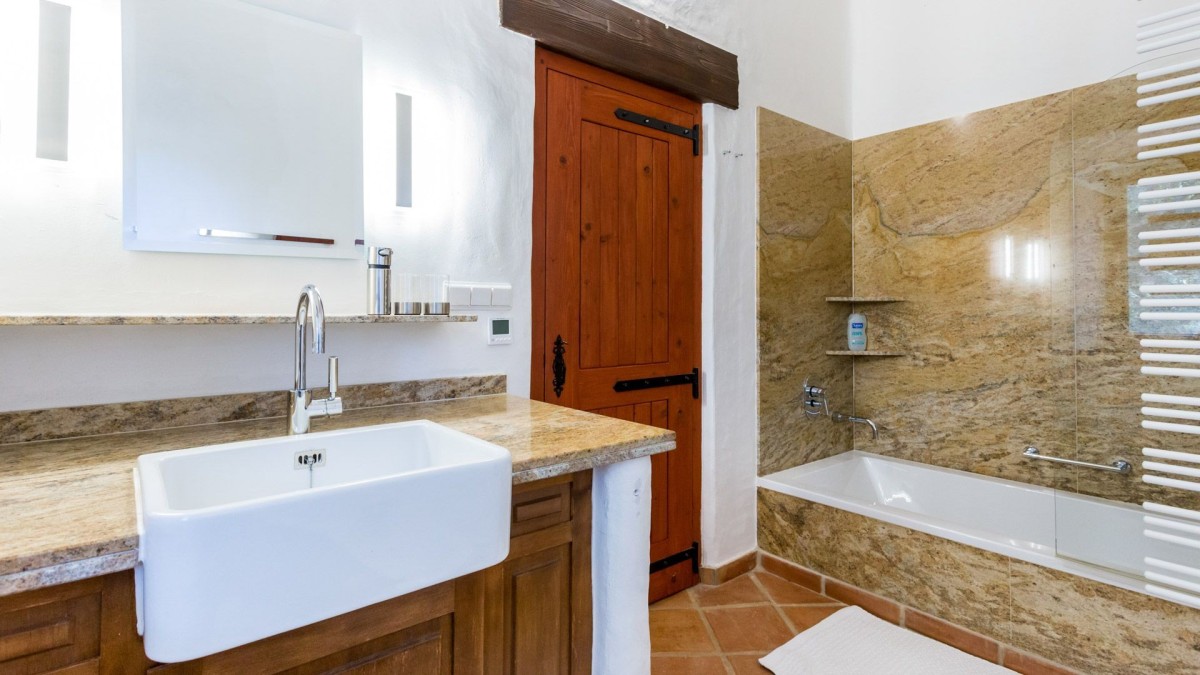 Bedroom 2: Bedroom with king-size bed, A/C, WiFi, TV, access to terrace, and en-suite bathroom with bath, vanity and WC. 2 guests maximum