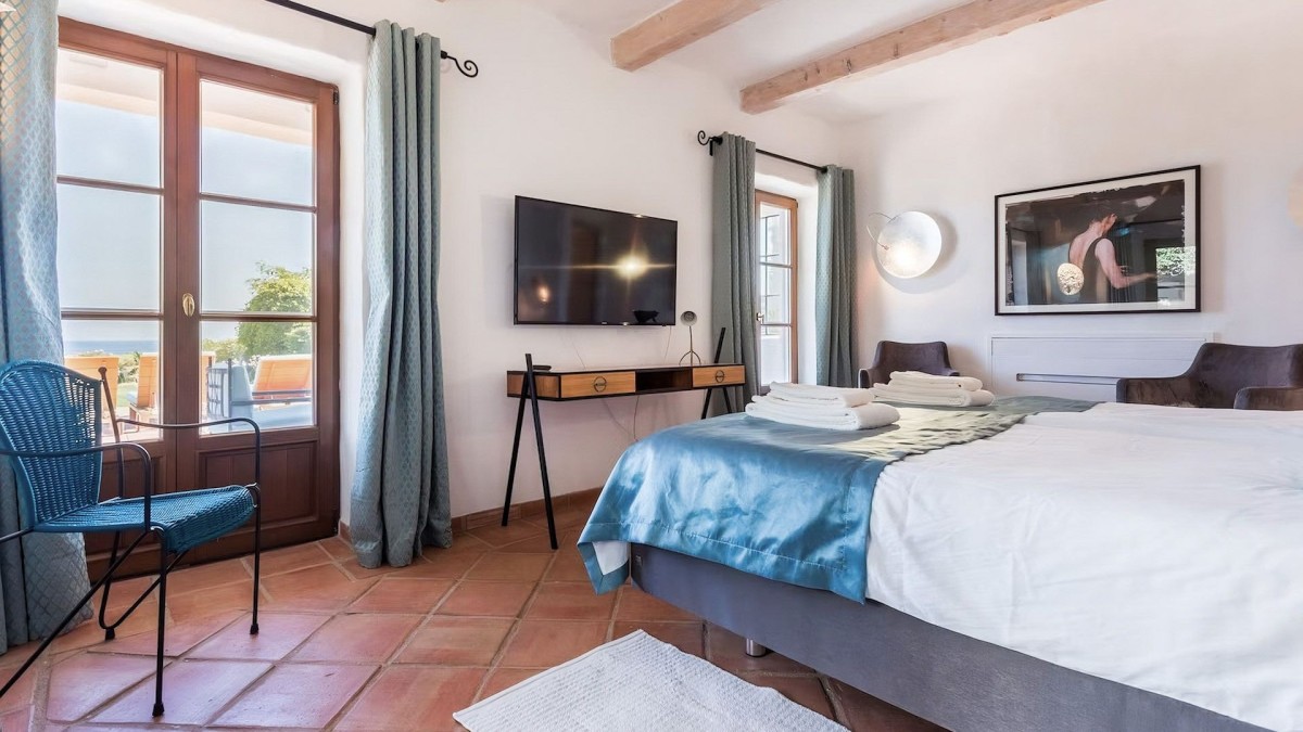 Bedroom 5: Bedroom with two single beds (can be made up as a king-size bed), A/C, WiFi, TV, access to terrace, and en-suite bathroom with shower, vanity and WC. 2 guests maximum