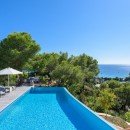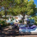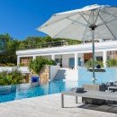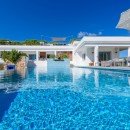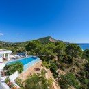 Villa Casa Blanca Jondal stands as a sophisticated and modern residence perched gracefully upon a captivating hillside above Cala Jondal Beach, renowned for its prestigious Blue Marlin Beach Club. The landscape, adorned with pine trees, descends gently towards the glistening turquoise expanse of the Mediterranean waters. Here, you are invited to unwind in complete seclusion, immersing yourself in the remarkable vistas that unfold before you. These panoramic views can be enjoyed not only from the salt-water infinity pool but also from every corner of the garden terrace.