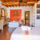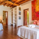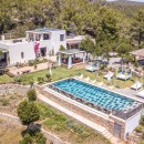 Can Savasana, Ibiza, Spain. Can Savasana stands as a remarkable transformation of a 500-year-old finca farmhouse? Nestled in an exclusive enclave of the island that remains mostly undiscovered by renters, it sits adjacent to one of the most enchanting beaches on the island, Cala Salada. This five-bedroom villa harmoniously blends tasteful interiors infused with Asian and African influences alongside the historic essence of the ancient farmhouse.