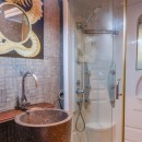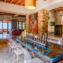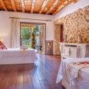 Can Savasana is an embodiment of sophistication, a perfect amalgamation of the traditional and the modern. Those seeking expansive dimensions, a lateral layout, and soaring ceiling heights will find solace here. The house retains its rustic heritage through thoughtful segmentation and modern adaptations. Local design elements shine through with the incorporation of natural materials like exposed timber beams, wooden window frames, shutters, and the age-old allure of natural stone. Modern embellishments such as polished concrete floors and contemporary fixtures add an air of refinement. The kitchen embodies a modern sociable layout while echoing the traditional country style of the home.