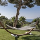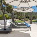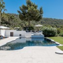 Stepping outside, immerse yourself in the natural splendor from the embrace of several sun terraces, basking in unrivaled sea panoramas. Fragrances of immaculately landscaped gardens envelop you within numerous chill-out spaces, blending sunlight and shade. Take a refreshing plunge into the expansive rectangular pool and indulge in the rejuvenating Ibizan sunlight from luxurious loungers.