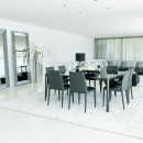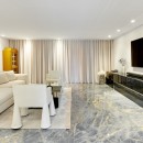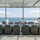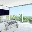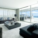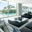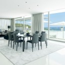 Inside, Villa La Costa's interiors are artfully crafted to capture the splendor of the sea views. Floor-to-ceiling sliding glass doors seamlessly merge the living spaces with the sun terrace, flooding the interiors with natural light and showcasing the mesmerizing sea views. Designed by Bruno Erpicum, the interiors feature luxurious velvets juxtaposed with glass and high-gloss finishes, all in soothing shades of grey, creating a dreamy atmosphere. The property's width accommodates a stylish open-plan living space where the kitchen, formal dining area, and lounge seamlessly blend together, offering panoramic views across the pool terrace to the sea.