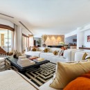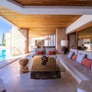Spanning an expansive 1200m2 floor plan, Villa Senon features six en-suite bedrooms and a spacious infinity pool, spread across multiple levels. The design emphasizes expansive spaces, with terraces adorned with opulent outdoor furnishings complementing the infinity pool.