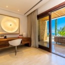Bedroom 1: Master bedroom with a double bed, A/C, TV, WiFi, dressing room, office, sea view, direct access to the pool, and en-suite bathroom with Jacuzzi, shower, double vanity and WC. 2 guests maximum.