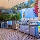 Crafted to blend breathtaking views with intimate retreats, the villa boasts two covered outdoor dining areas, one adjacent to the pool and another on the decking near the outdoor kitchen. The open-plan living area seamlessly merges with the covered terrace and pool terrace, creating a fluid transition between indoor and outdoor living. Integration is further enhanced by a fully integrated Airplay music system and premium B&O speakers.