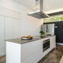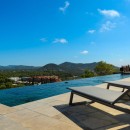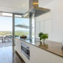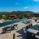 The villa’s sleek, angular white-rendered design is tucked into the back of its plot, allowing the expansive pool terrace to make the most of the stunning countryside vistas. The terrace extends from the house, featuring a glistening infinity pool as its centerpiece.