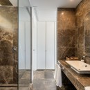 Bedroom 3: First-floor bedroom with king-size bed, A/C, TV, access to shared terrace, and en-suite bathroom with shower, vanity and WC. 2 guests maximum