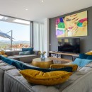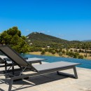 Relax on one of the loungers lining the spacious deck, basking in the warm Ibizan sunshine, or gather with friends at the large outdoor dining table that seats up to fourteen. Children will enjoy playing on the manicured lawn adjacent to the pool area. For ultimate relaxation, there’s a stylish chill-out lounge by the pool with L-shaped sofa seating, offering the perfect spot to watch the sunrise or savor a vibrant Ibizan sunset.