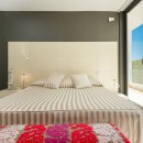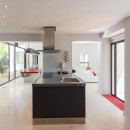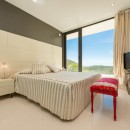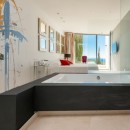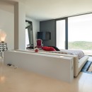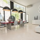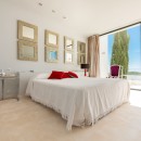 Touches of vibrant red inject life into the prevailing monochrome theme, which carries through to the five airy and generously proportioned bedrooms. With lofty ceilings and expansive windows, these rooms welcome abundant natural light, allowing the Ibizan sunshine to permeate every corner of the house. The fifth double room features external access and a compact kitchenette.