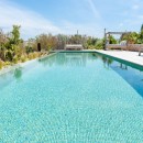 The focal point is the pool area, offering an expansive sun-covered terrace, plush luxury sun loungers, an alfresco shower, and an elegant four-poster pagoda, guaranteeing guests the epitome of relaxation.