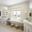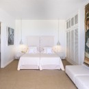 Exuding sophistication and elegance, Villa Can Felipe boasts pristine, light-filled interiors that radiate a tranquil aura. The refined lounging spaces are adorned with a tasteful blend of neutral hues and comfortably chic furnishings, complemented by exquisite artwork. The use of pale tiles, white walls, immaculate linens, and vibrant touches of yellow, coupled with airy bedrooms and graceful bathrooms, perpetuates the property's stylish ambiance. The principal suite, featuring an ensuite bathroom, along with a children's room furnished with two single beds (stacked) and an adjoining bathroom, is situated in the central wing of the villa.