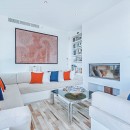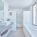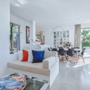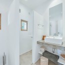 The same contemporary and soothing neutral aesthetic carries into the bedrooms. On the main level of the villa's entrance, the Master bedroom takes center stage, complete with two en-suite bathrooms—one featuring a shower and the other a bath. Adjacent to the Master bedroom lies bedroom 2, a twin room, accompanied by a conveniently situated shower room.
