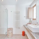 Moving downstairs, two additional bedrooms await. Bedrooms 3 and 4 feature double beds that can also be configured as twin beds (90x2), each accompanied by its en-suite bathroom. While one of the bedrooms offers a shower area, the other has a shower space and a separate toilet.