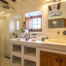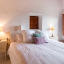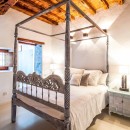 In comparison, the guest bedrooms exude a charmingly understated elegance, with white-rendered walls, wooden rafters, and inviting white linens.