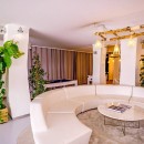 An additional interior space dedicated to relaxation and entertainment is perfect for hosting guests. This area boasts ample sofa seating, a pool table, a foosball table, and a well-stocked bar. For special occasions, the adjacent club can be accessed, complete with a music system, atmospheric lighting, and a DJ cabin.