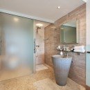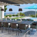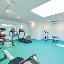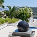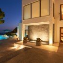 Outside, the villa is surrounded by pristine gardens, adorned with waterfalls, a stunning "water mirror," and an extraordinary infinity pool that offers breathtaking views. The sun terrace and swimming pool area are furnished with sun loungers, chill-out beds, a large dining table, and a gas barbecue, providing the perfect setting for relaxation and entertainment. As night falls, the front terrace comes alive with beautiful gas fireplaces, creating a magical ambiance for entertaining your special guests.
