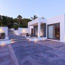 Inside, the villa boasts a luxuriously designed open-plan lounge and formal dining area, complemented by a fully equipped kitchen with a breakfast bar. The villa is fully air-conditioned and equipped with central heating, ensuring your comfort in any season. Indulge in the epitome of luxury living amidst the beauty of Ibiza's natural surroundings.