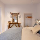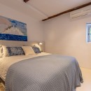 Bedroom 2: Ground floor bedroom with a king-size bed, A/C, WiFi, private terrace, and en-suite bathroom with shower, vanity, and WC. 2 guest maximum