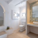 Bedroom 5: Ground floor bedroom with a king-size bed, A/C, WiFi, private terrace, and en-suite bathroom with shower, vanity, and WC. 2 guest maximum