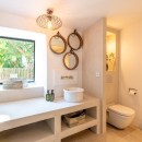 We offer five luxurious en-suite bedrooms. The master suite, situated on the upper level, includes an elegant antechamber that leads to a sunlit bedroom with sweeping countryside vistas and an alfresco shower with stunning landscape views.