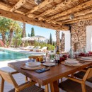 Retaining its rustic allure, the property Finca Dayanara features authentic sabina timber ceilings, natural rock walls, and gracefully arched doorways adorned with intricate cornicing, creating an atmosphere of refined luxury.