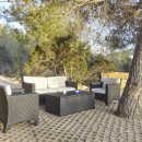 Spanning three meticulously designed levels, Villa Solana presents a remarkably spacious and well-ventilated haven for your vacation. Revel in outdoor dining by the charming wooden table or unwind on a comfortable white couch shaded by a cool awning.