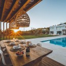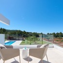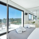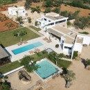 This modern and sophisticated domicile spans across two levels, providing ample room and seclusion for all its guests. The ground floor boasts spacious interiors adorned with expansive windows. An impressive 80m2 living area extends to both sides of the structure, accompanied by a fully equipped kitchen. All these spaces seamlessly connect to the exquisite outdoor surroundings. Within this level, four bedrooms are situated, each graced with a sizeable terrace granting panoramic views of the surrounding countryside. Among these, two feature en-suite bathrooms, while the remaining two share a bathroom.
